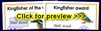 Kingfisher-themed reward certificates to accompany the kingfisher targets.