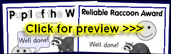 Raccoon-themed reward certificates to accompany the raccoon target sheets.