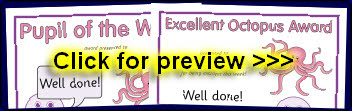 School child-themed reward certificates to accompany the child-themed target sheets.
