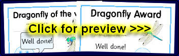 Dragonfly-themed reward certificates to accompany the dragonfly target sheets.