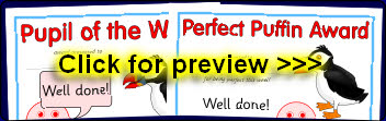Puffin-themed reward certificates to accompany the puffin target sheets.