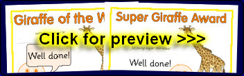 Giraffe-themed reward certificates to accompany the giraffe target sheets.