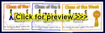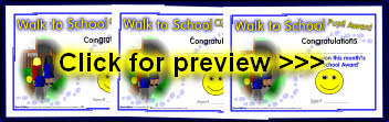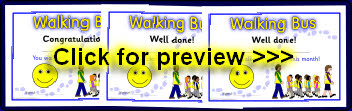 A set of printable certificates that can be presented to classes or individuals for walking to school. Termly, half-termly, monthly or weekly.