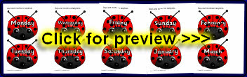 A set of colourful bugs with the days of the week (Monday-Sunday) and the 12 months of the year.