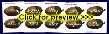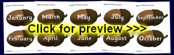 The months of the year presented on acorns. Great for use on a birthday timeline display.