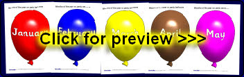 The months of the year presented on coloured party balloons. Ideal for a classroom birthday timeline or display.