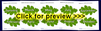 The months of the year presented on oak tree leaves. Great for use on a birthday timeline display.