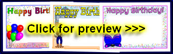 Printable A4 page borders with a ‘Happy Birthday’ theme (portrait and landscape). The ZIP includes rezizable JPG backgrounds as well as Microsoft Word templates.