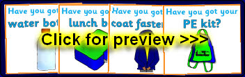 A set of printable signs for your cloakroom to remind children which things they should take home with them.