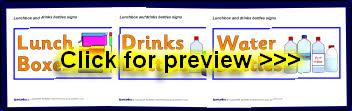 Simple signs to show children which tables to place their lunch boxes and drinks bottles on when they arrive in the morning.