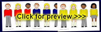 A set of printable children in school uniforms with space for you to stick their photograph for the head. Ideal for self-registration displays, but could also be used to indicate class groupings and many other uses.