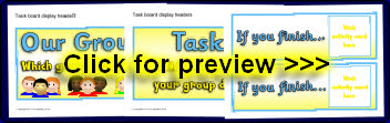 A set of printables for your classroom Task Board display. Includes various headers such as ‘Our Groups’, ‘Our Tasks’ and headings for up to 6 different tasks, including a ‘When your finished...’ task header.