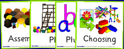 A colourful set of printable cards featuring all of the major activities, subjects and areas of learning covered in Reception and Key Stage 1. Includes a PDF with the timetable cards pre-arranged 6 to a page (A4) as well as resizable images.