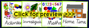 A colourful set of printable cards featuring all of the major activities, subjects and areas of learning covered in Reception and Key Stage 1. Includes a PDF with the timetable cards pre-arranged 6 to a page (A4) as well as resizable images.