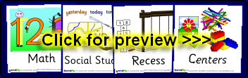 A colourful set of high-resolution JPG images featuring all of the major activities, subjects and areas of learning covered in Reception and Key Stage 1. Images can easily be resized to suit your needs. The download also includes a PDF document with the timetable images pre-arranged 6 to a page (A4).