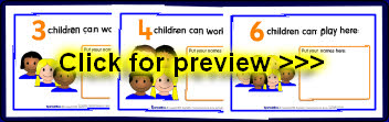 A set of posters you can use to show how many children can play/work in each of your different classroom learning areas.