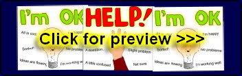 A set of printable ‘I’m OK’ and ‘Help!’ cards (6 to a sheet) that can be printed double-sided and laminated. Children show the ‘I’m OK’ card when they are working fine, and turn over to the ‘Help!’ Card if in need of assistance.
