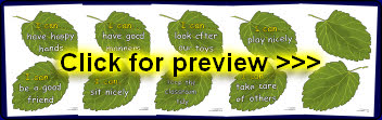 A set of printable leaves featuring ‘I can...’ statements promoting good behaviour. Resource includes an editable version to add your own text to leaves.