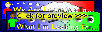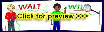 Two simple posters featuring ‘Walt’ and ‘Wilf’ characters designed to display ‘We are learning to...’ and ‘What I’m looking for...’ class targets and objectives.
