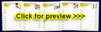 A set of editable templates (for Microsoft Word) for each of the 5 Areas of Learning taught in Scotland. Each sheet includes 9 ‘I can’ boxes where children’s achievements can be recorded and celebrated.