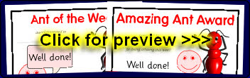 Ant-themed reward certificates to accompany the ant target sheets.