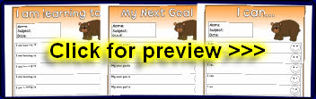 Editable target sheets (for Microsoft Word) with the text ‘I am learning to...’, ‘My next goal is...’ and ‘I can...’. Each sheet has space for 10 targets.