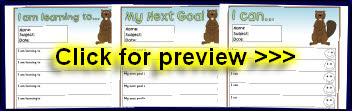 Editable target sheets (for Microsoft Word) with the text ‘I am learning to...’, ‘My next goal is...’ and ‘I can...’. Each sheet has space for 10 targets.