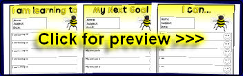 Editable target sheets (for Microsoft Word) with the text ‘I am learning to...’, ‘My next goal is...’ and ‘I can...’. Each sheet has space for 10 targets.