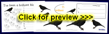 Blackbird-themed reward certificates to accompany the blackbird target sheets.