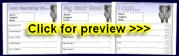 Editable target sheets (for Microsoft Word) with the text ‘I am learning to...’, ‘My next goal is...’ and ‘I can...’. Each sheet has space for 10 targets.