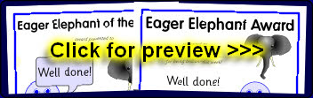 Elephant-themed reward certificates to accompany the elephant target sheets.
