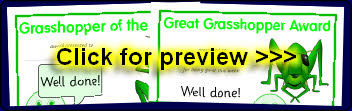 Grasshopper-themed reward certificates to accompany the grasshopper target sheets.