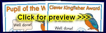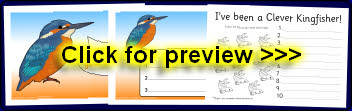 Kingfisher-themed reward certificates to accompany the kingfisher targets.