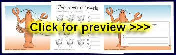 Lobster-themed reward certificates to accompany the lobster target sheets.