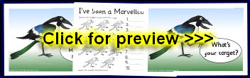 Magpie-themed pupil target and achievement sheets
