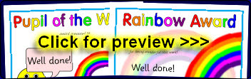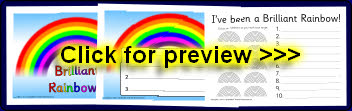 Rainbow-themed reward certificates to accompany the rainbow target sheets.