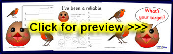 Robin-themed reward certificates to accompany the robin target sheets.