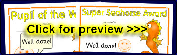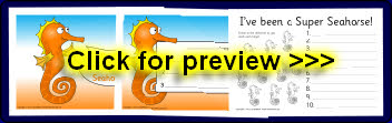 Seahorse-themed reward certificates to accompany the seahorse target sheets.
