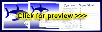 Shark-themed reward certificates to accompany the shark target sheets.