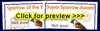 Sparrow-themed reward certificates to accompany the sparrow target sheets.