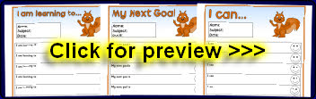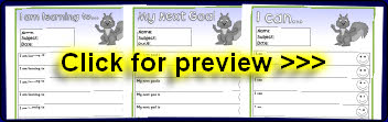 Editable target sheets (for Microsoft Word) with the text ‘I am learning to...’, ‘My next goal is...’ and ‘I can...’. Each sheet has space for 10 targets.