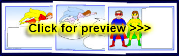 Printable editable posters for your superhero-themed target board. Type targets or rules into the speech bubbles or as a simple list. Use these editable posters as visual aids in all sorts of contexts.