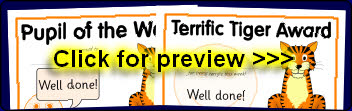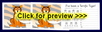 Tiger-themed reward certificates to accompany the tiger target sheets.