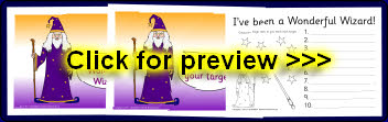 Wizard-themed reward certificates to accompany the wizard target sheets.
