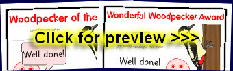 Woodpecker-themed reward certificates to accompany the woodpecker target sheets.