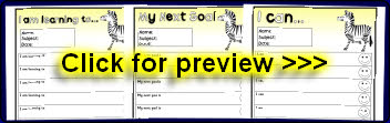 Editable target sheets (for Microsoft Word) with the text ‘I am learning to...’, ‘My next goal is...’ and ‘I can...’. Each sheet has space for 10 targets.