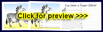 Zebra-themed pupil target and achievement sheets