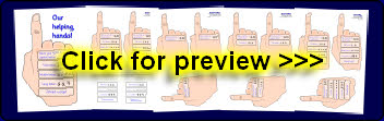 A useful means of providing children with targets and reminders when writing in cursive script. Each pupil has their own laminated ‘hand’ and as each target is accomplished, a new one can be added. Includes a large copy for a classroom display.