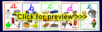 A set of A4-sized posters featuring the letters of the alphabet in cursive script, together with images of items that begin with each alphabet sound. These would make a colourful alphabet line if displayed in your classroom or could be used to aid discussion about each initial sound.