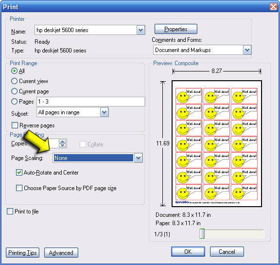 4. Make sure that the ‘Page Scaling’ option is set to ‘None’ - i.e. NO page scaling.
